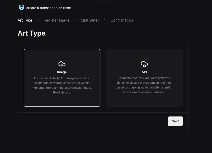 * **Image**: Static snapshots capturing specific blockchain moments, representing user transactions as fixed visuals.