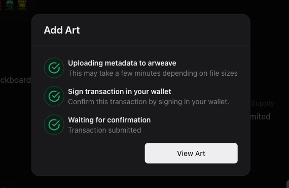 Once these steps are complete, you'll see a "View Art" button, which you can click to see your newly added art.
